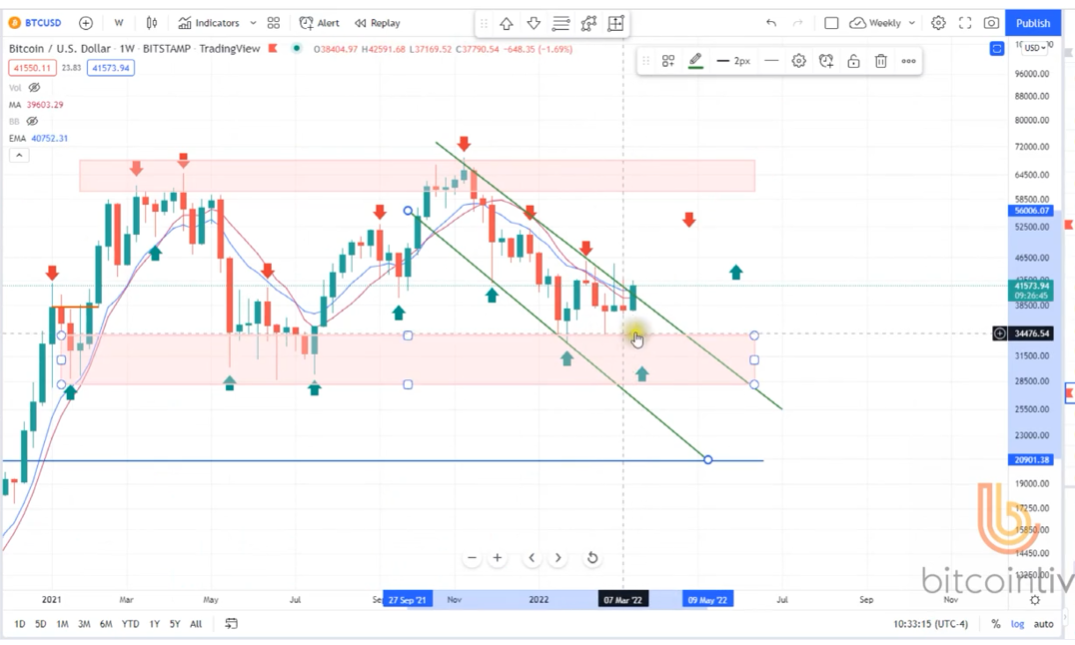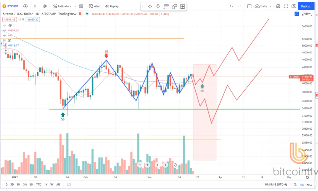 On the upside, if BTC continues to move side-ways, we should start to look at couple of key levels. The first one here, is the March 9 high, may be few hundred dollars above that, up to $43k will give the bulls an edge, heading to a new cycle high.